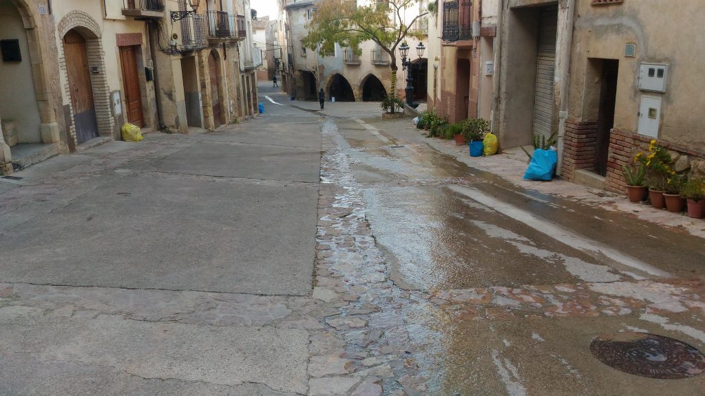 El tram de carrer Major darrera de l’ermita de Sant Joan, el paviment del qual va ser reparat divendres passat, ha hagut de tornar a ser obert per una fuita a la canalització d’aigua potable. El problema es troba a l’entrada d’aigua a una casa, i pel que sembla la fuita feia passar el líquid per sota de la planxa de ciment del carrer Major. Avui, quan s’ha obert, s’ha detectat el tub avariat, i a conseqüència d’aquesta obertura l’aigua que s’escapa baixa carrer Major avall, cap al carrer Priorat.
