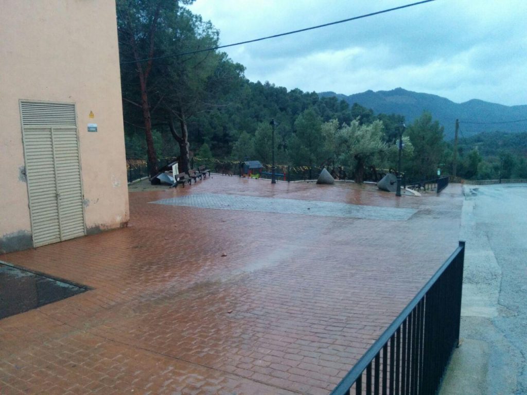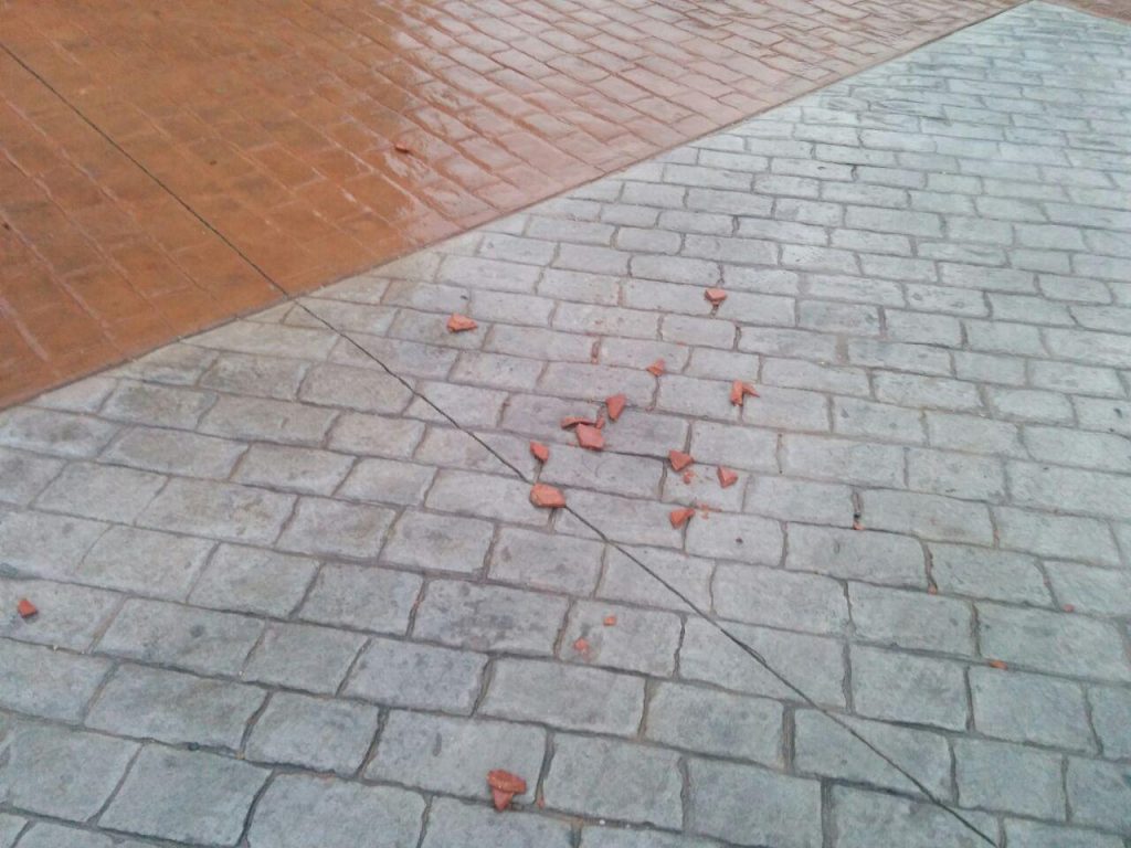 El fortíssim vent que està bufant ha provocat la caiguda de diverses teules i pedres. S’han vist fragments de teula esmicolats a llocs tan allunyats de les façanes com la plaça del parc, al costat de la bàscula de la Cooperativa. Entre els objectes que han caigut també hi ha pedres, que segurament provinguin de petits despreniments de façana.
