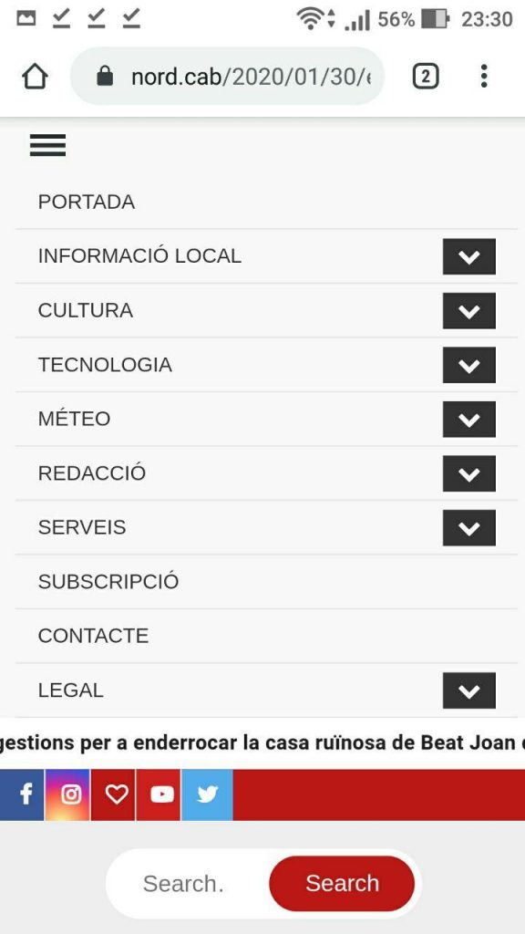 Per a accedir-hi des de dispositius mòbils, cerqueu el quadre de tres línies de la part superior esquerra de la pantalla, i desplegueu la secció Serveis per a seleccionar la pàgina que incorpora el programa: