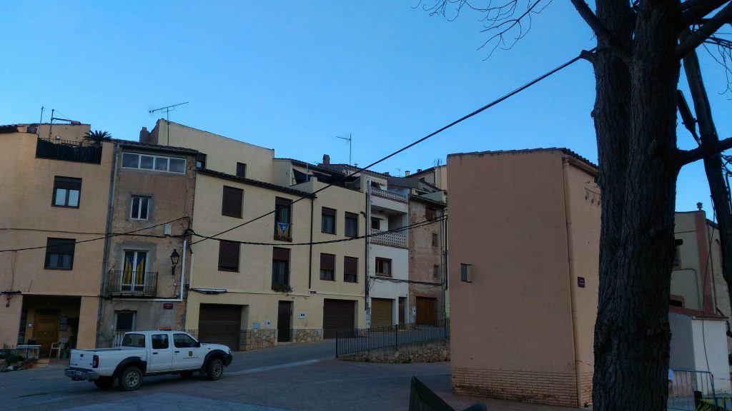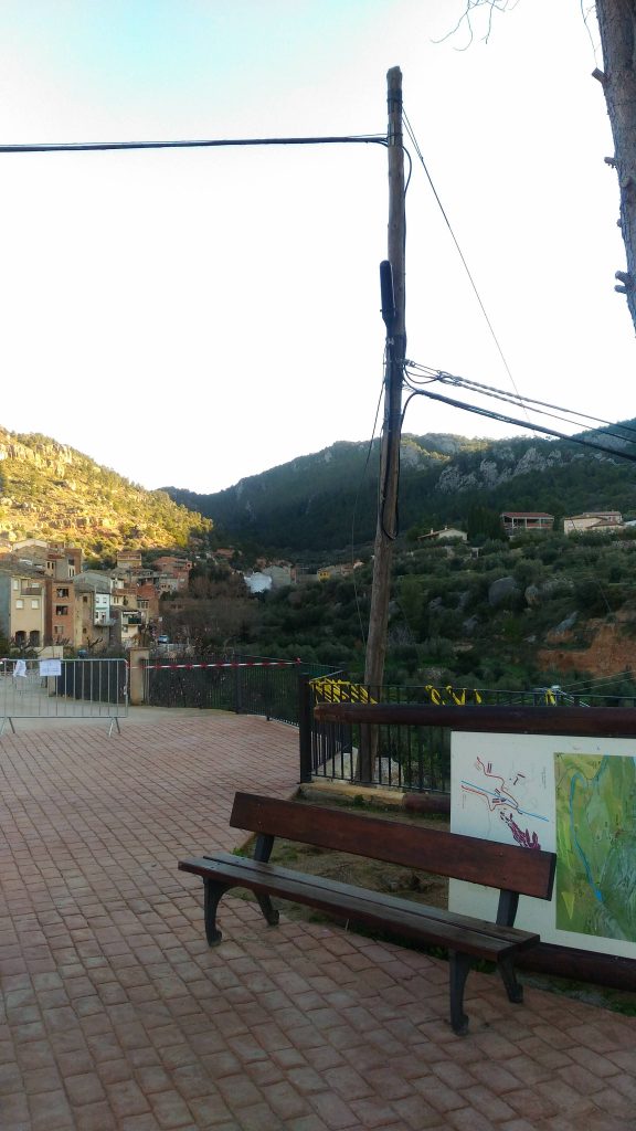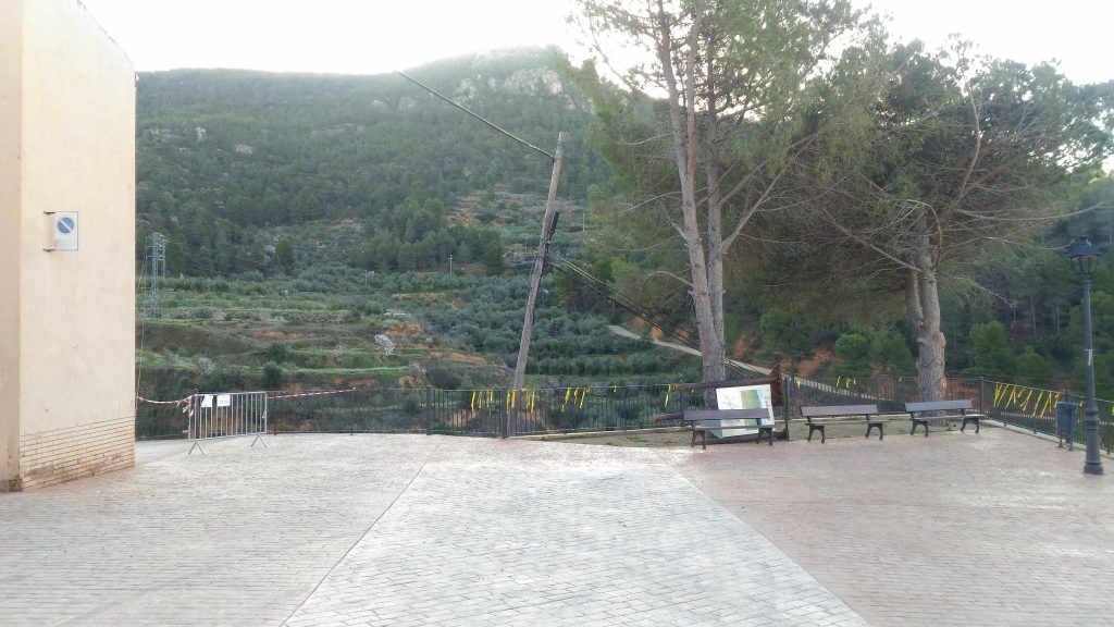 Un pal de la línia de telèfon fix que fa arribar el cablejat al parc amenaça de caure i, amb ell, el cable que creua el carrer. Els tensors d’aquest pal van ser tallats quan es va construir el carrer de la Font de Baix, el 2004, i això ha fet que el pes del cablejat vagi torcent el suport. La inclinació del pal és molt evident, i el joc de forces fa que fins i tot s’hagi arquejat: per un costat, el pes de la línia de cablejat que hi arriba des de la Plana del Tergue l’estira cap a aquell costat, i de l’altre, els ancoratges del cable a la paret fan resistència. Possiblement gràcies a això el pal encara no ha caigut, però aquesta força fa que el cable telefònic que creua el carrer estigui completament tensat, com es pot veure a les imatges adjuntes.