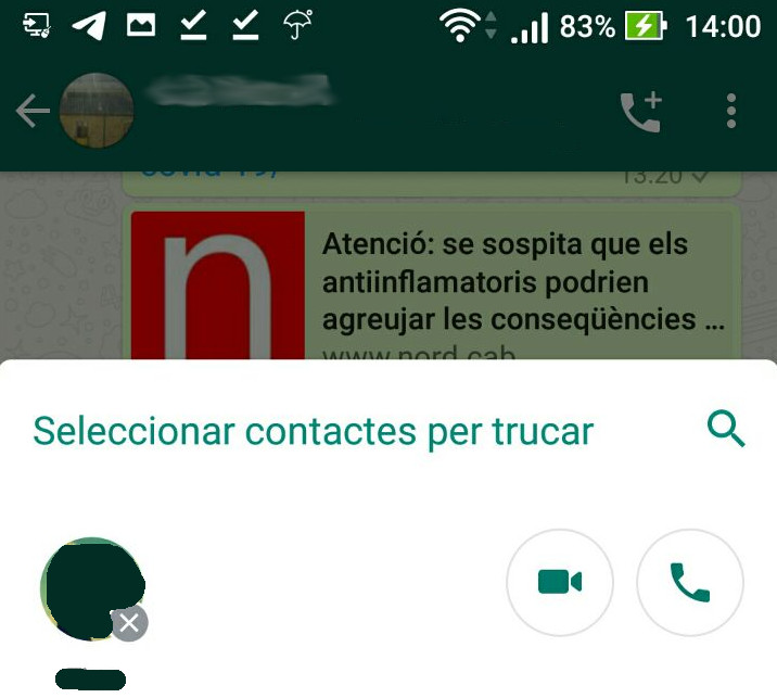 WhatsApp té una funció que permet fer videoconferències amb qualsevol usuari. Per a iniciar-la, només cal que piqueu a sobre de la icona que té forma de càmera de vídeo (al costat de la icona del telèfon, que permet fer també trucades a cost zero):