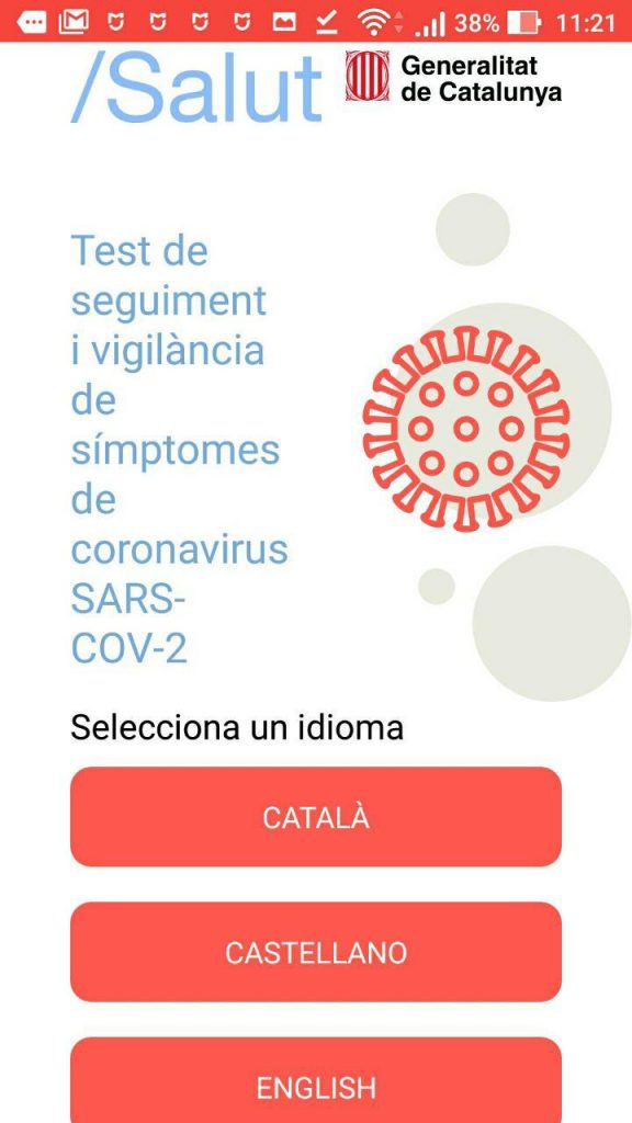 L’aplicació STOP COVID-19, del Departament de Salut, permet respondre a una enquesta que determinarà, mitjançant símptomes comuns, si podeu patir infecció per SARS-CoV-2 i la malaltia que desenvolupa, la COVID-19. Es recomana que tothom faci l’enquesta, tingui o no símptomes, per a ajudar a Salut a elaborar el mapa de la pandèmia a Catalunya. Recordeu que això no és un test de detecció del virus i que el resultat és orientatiu. Aquí i aquí s’explica com es processen les dades que introduïu a l’enquesta d’aquesta aplicació. Podeu veure les dades anonimitzades dels usuaris locals aquí. Us expliquem com funciona: