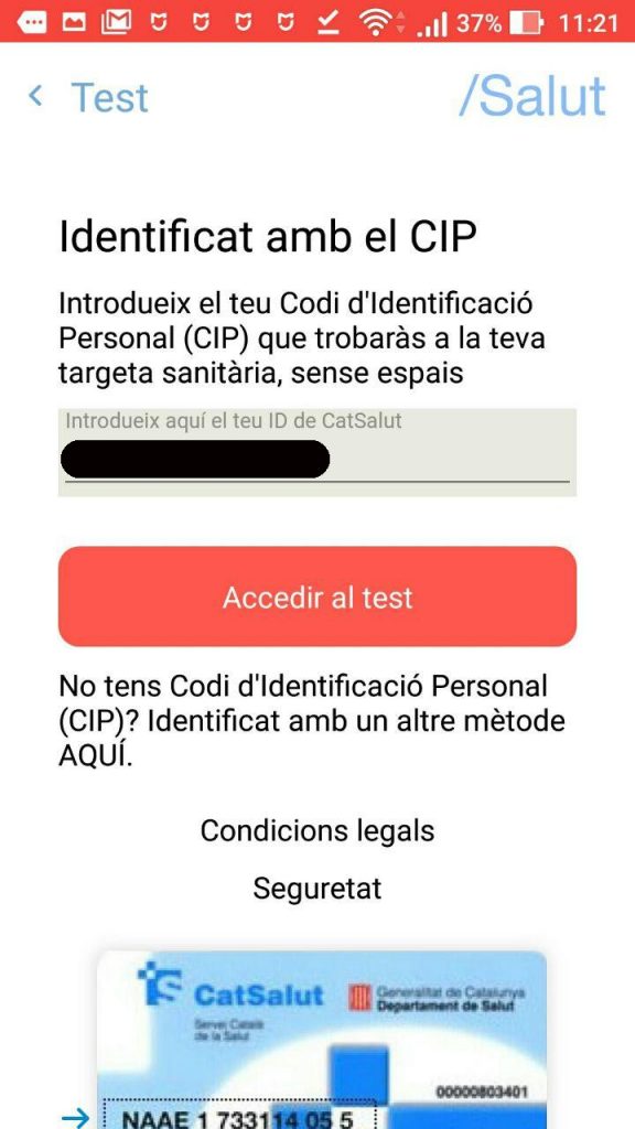 Us demanarà que us identifiqueu amb el número de la vostra targeta sanitària: