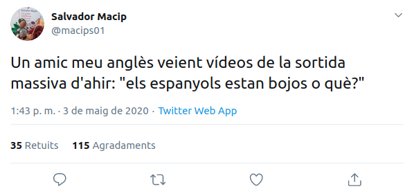 En una entrevista que li va fer Vilaweb, publicada el dia 1 de maig, la lectura de la qual us recomanem molt especialment, explica a bastament el risc de fer les coses com s’estan fent, malament. Argumenta que el govern espanyol s’ha precipitat amb la desescalada: