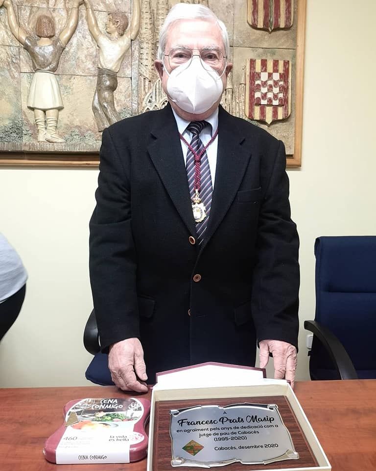 Per la seva equanimitat, bon tracte, intel·ligència i virtut mediadora en conflictes va rebre una placa que li reconeix els mèrits.