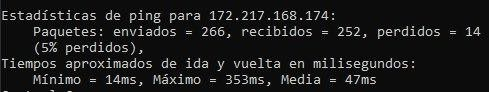 Aquesta és una anàlisi del ping fet amb CMD de Windows, realitzat durant els dies anteriors.
