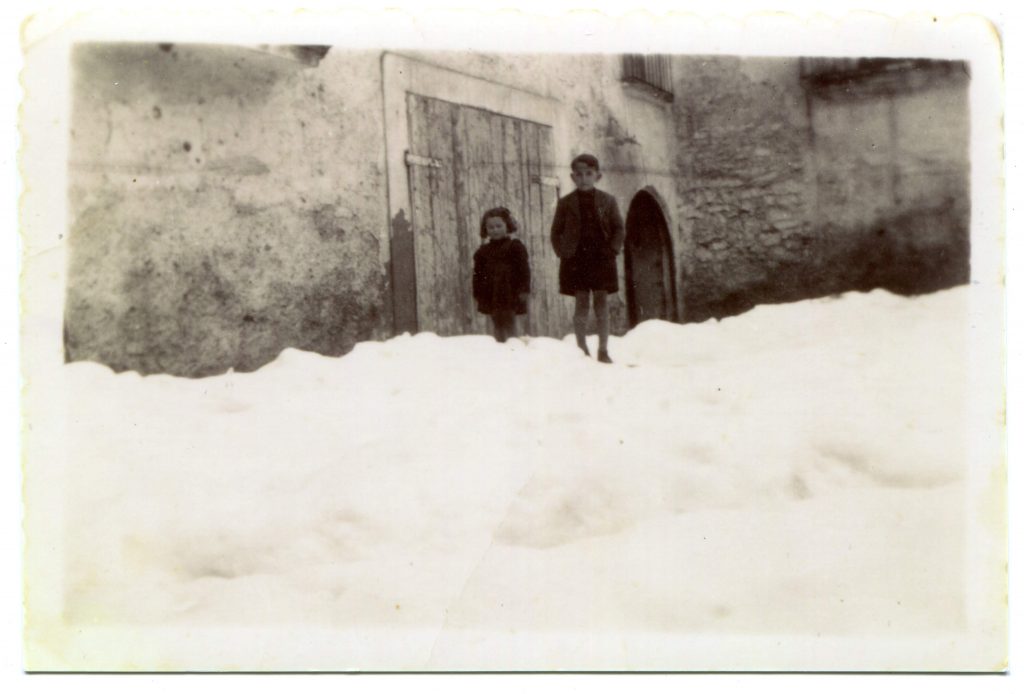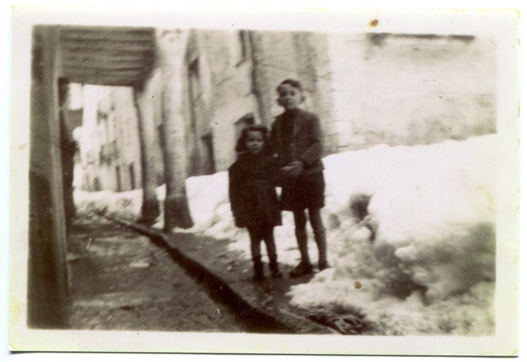 Altres imatges dels mateixos dies, també preses per Josep Sabaté. i que mostren els seus fills Josep Maria i Loreto al carrer, amb la neu, quan el gruix ja s’havia reduït:
