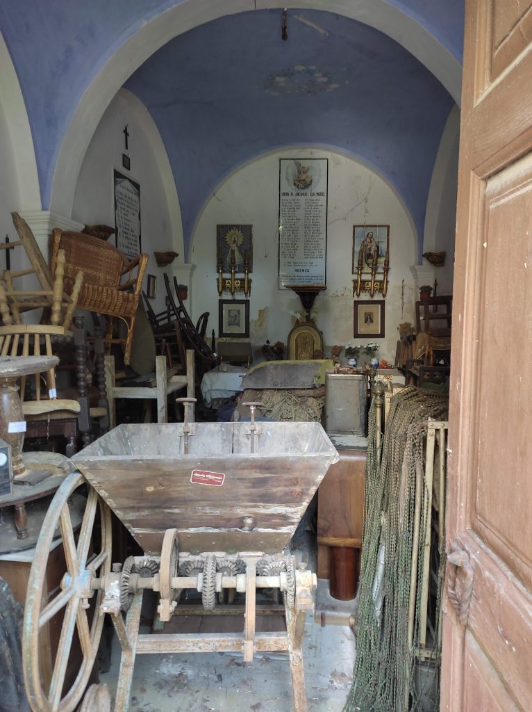 Hem tingut ocasió d’entrar, recentment, a la capella de Sant Miquel del Mas Roger, actualment utilitzada com a magatzem per a guardar-hi el mobiliari que es va poder recuperar de l’interior del mas. És l’habitacle de tot el mas més ben conservat, ja que encara manté l’ornamentació original. Li manquen, però, les figures dels sants, i al seu lloc només hi ha els suports buits.