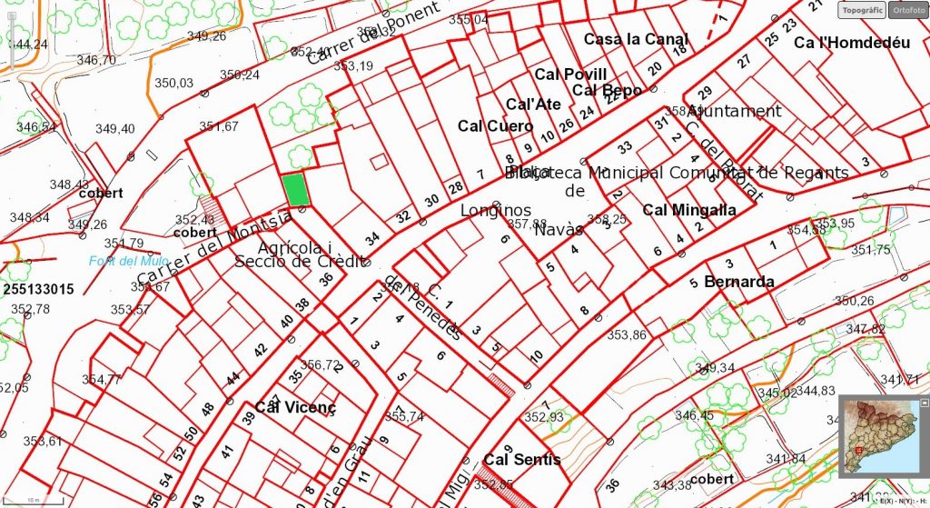 En verd, l’edifici que s’està enderrocant per a unir els carrers del Mulo i Ponent.