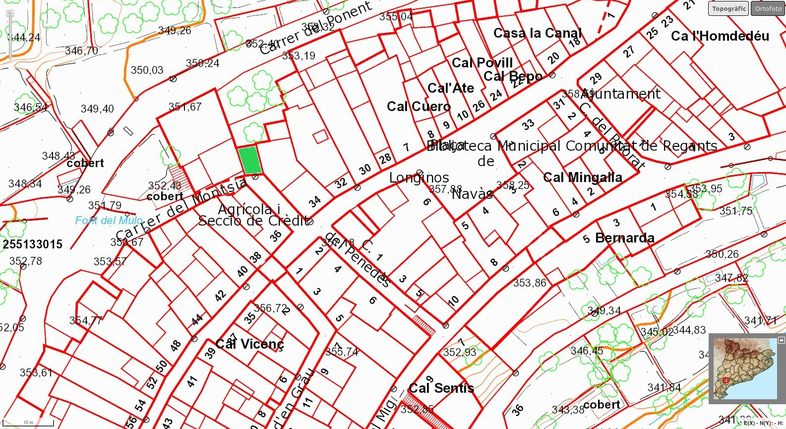 En verd, l’edifici que s’està enderrocant per a unir els carrers del Mulo i Ponent.