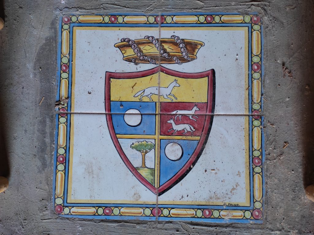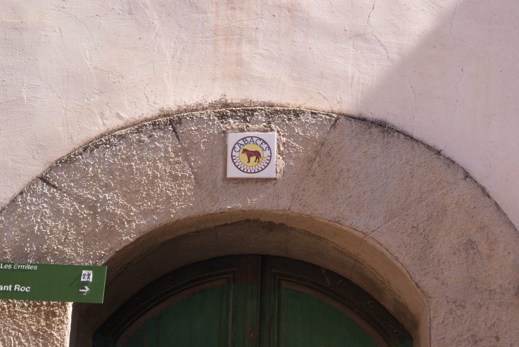 Tot coronant una portalada lateral del mas, s’hi veu una altra rajola, que reprodueix un gos, amb la llegenda “CABACES” i un estriat de punts a sota (figura 8). De nou, Vidal reprodueix un segell tampó municipal, documentat a principis del segle XIX (figura 7), que al seu torn no és res més que l’evolució del segell en lacre utilitzat per a validar la documentació produïda per la cort del batlle general de la Baronia de Cabassers (figura 6), documentat entre finals del segle XVII i principis del XVIII. La mateixa rajola es troba decorant l’entrada de l’ermita de Sant Joan de la Canal, a Cabassers, que es reformà amb el finançament de Miquel Vidal la dècada de 1950 (figura 9).