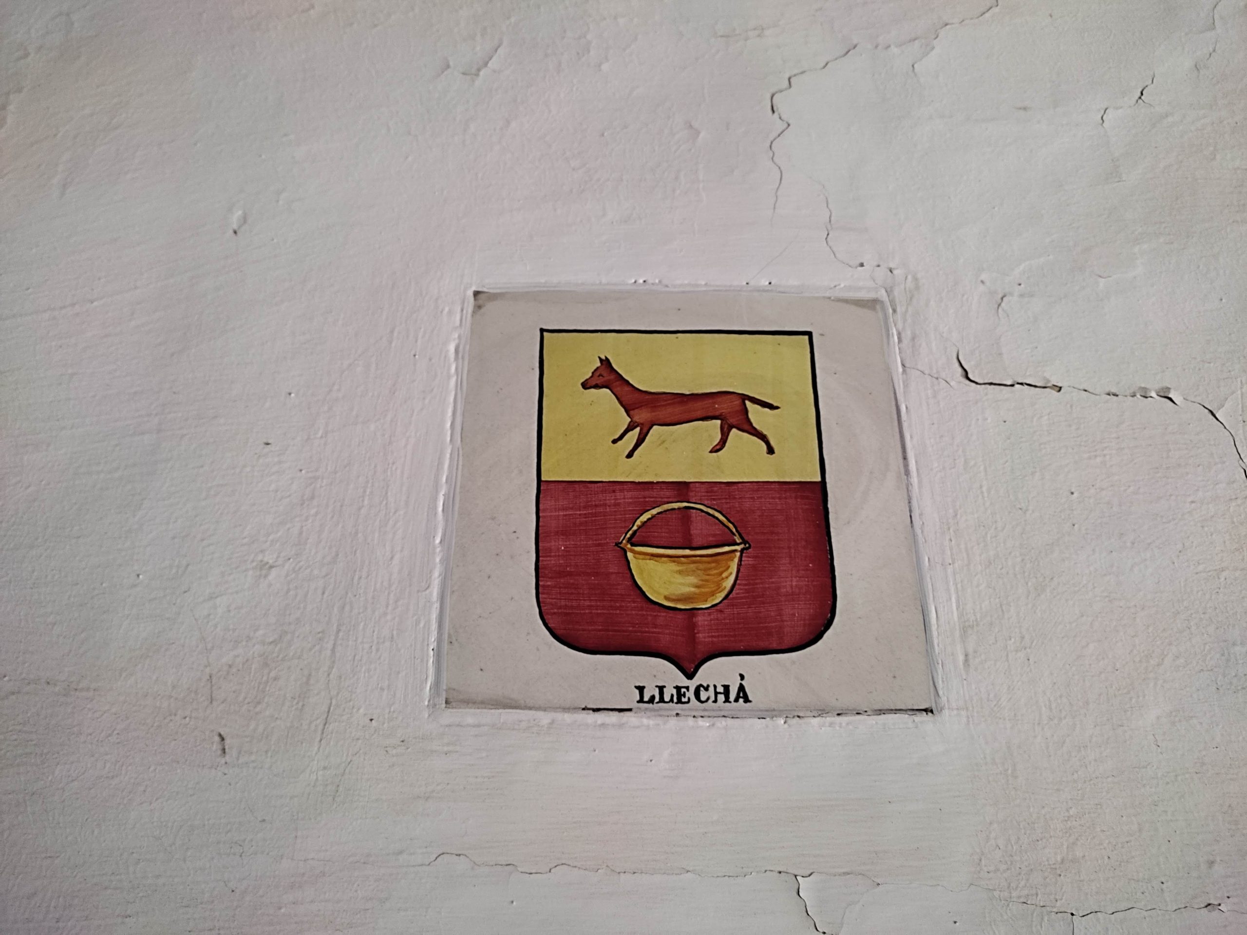 Finalment, tant a l’entrada del Mas Roger com al menjador de la planta noble, al primer pis, s’hi veu una altra rajola, que representa un gos i un cabàs, amb la inscripció “LLECHÀ” (10). Aquest símbol també té inspiració en l’heràldica municipal cabasserola, en concret en la que es troba a la pradel·la del retaule de Santa Maria (11), conservat a l’església. Allí, dintre d’àrees quadrades en disposició romboide, s’hi pot veure la representació d’un gos negre sobre fons vermell en una, i d’un cabàs en una altra. Probablement el gos representi el poder baronial, la fidelitat dels serfs al senyor. El cabàs o cossi potser faci referència a una falsa etimologia de “Cabassers”, que no té res a veure amb la fabricació de cabassos, sinó que el mot és d’origen llatí i arabitzat sota la forma Avicabescer, recollida per primer cop el 1149.