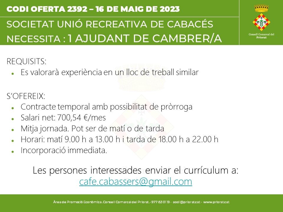 Els interessants poden enviar el currículum a cafe.cabassers@gmail.com