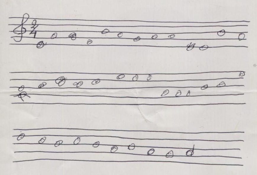 També recordava la tonada de la cançó, i la va transcriure en una partitura: