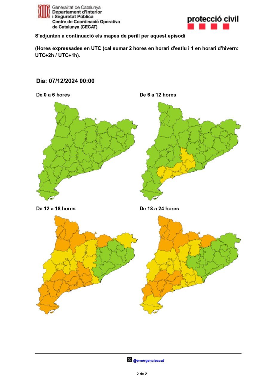 Protecció Civil ha comunicat que en base a les previsions meteorològiques emeses pel Servei Meteorològic de Catalunya i per les afectacions que es preveu que se’n poden derivar, s’ha activat el Pla especial d’emergències per risc de vent a Catalunya (VENTCAT) en fase d’alerta.