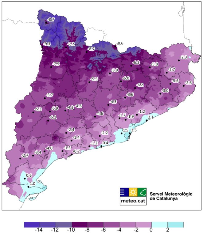 L’episodi de fred intens s’iniciarà aquesta nit de forma generalitzada a tot el territori, amb especial afectació al pla de Lleida, al Priorat i a la Conca de Barberà. Demà a la nit també s’espera afectació a tot el territori de forma generalitzada.