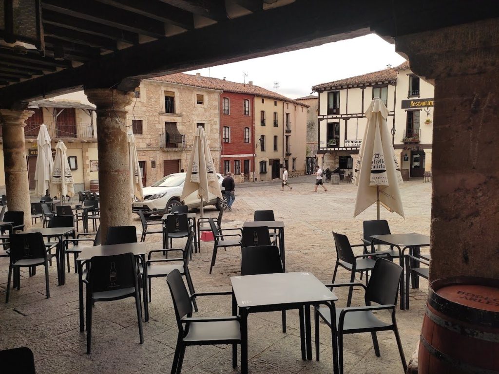 Covarribias serà un bon lloc per anar-hi a dinar. Si voleu fer-ho a qualsevol dels restaurants que hi ha a la plaça major, dita de Doña Urraca, més val que feu reserva prèvia si hi aneu el mes d’agost. Fa vint anys no hi havia problema, però d’ençà que Covarrubias va entrar al programa “Los pueblos más bonitos de España” durant l’estiu es massifica força. S’hi podrà veure, a més, la torre de Fernán González i l’excol·legiata de San Cosme i San Damián, tot a tocar del riu Arlanza, en un entorn fresquíssim a l’estiu. Una altra opció per a dinar és Hortigüela, a només un quart d’hora per carretera, i a l’hostal La Moruga, on, atenció, us atendran en català si saben que veniu de Catalunya, ja que la propietària és de Barcelona.