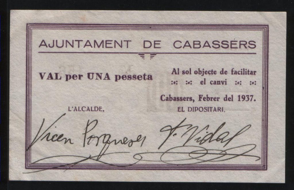 Després d’aquest episodi, l’octubre de 1936, en ple context de la Guerra Civil Espanyola, Porqueres Argany va ser nomenat alcalde de Cabassers. Durant el seu mandat, el febrer de 1937, el consistori va prendre una mesura notable i característica de l’època: l’emissió de moneda local fraccionària. Aquesta divisa s’ha convertit en una de les icones més representatives del període bèl·lic al poble de Cabassers.