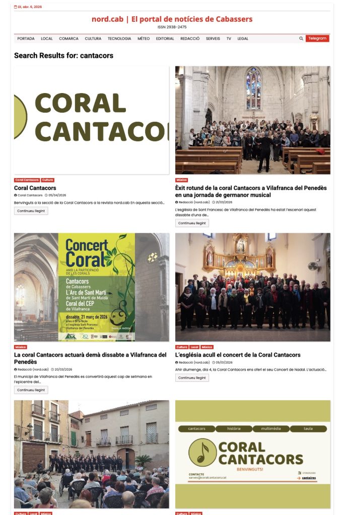 I, finalment, des d’aquí podreu cercar totes les notícies publicades en aquesta revista sobre la Coral Cantacors.