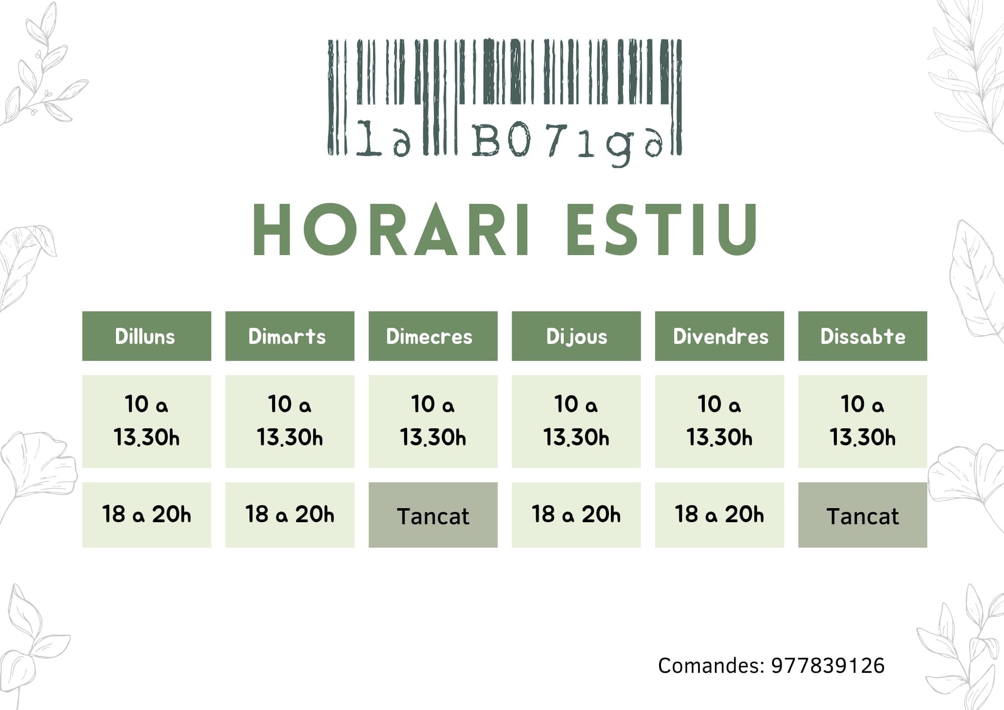 Horari actualitzat el 23/06/2023